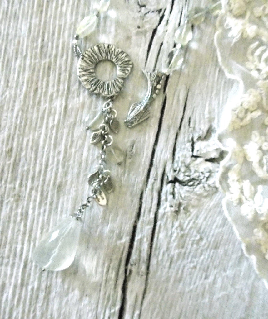 Closure is a gorgeous large antique pewter lily pad & Koi fish toggle, strategically positioned in the front for ease of access.
