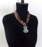 2-strands of hand-knotted iridescent copper/brown Biwa Freshwater Pearls (stick Pearls), gathered into Sterling Silver decorative beads